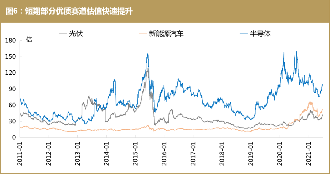 近期,部分业绩释放期半导体、新能源汽车等优质赛道受到博弈性资金集中买入,短期估值抬升明显,我们认为这些板块中长期虽仍看好,但短期博弈情绪高涨时期需保持一份理性,至少应以中期眼光甄选未来2-3个季度业绩高增长确定性强的个股。