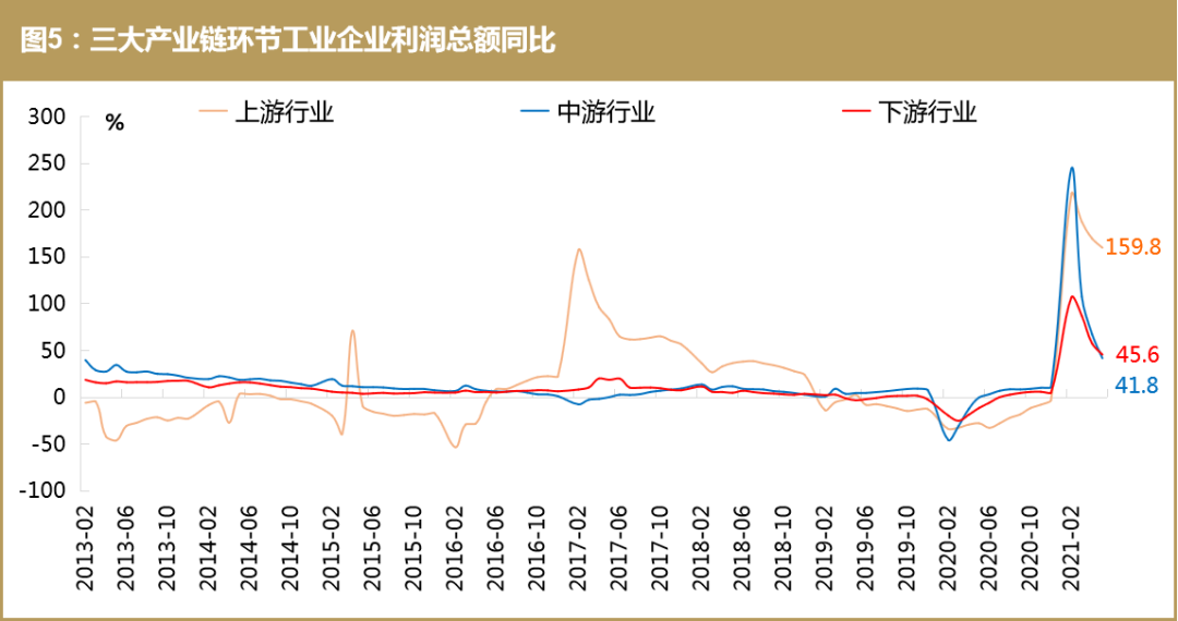 A股企业盈利增速与工业企业利润增速高度相关,我们以后者的表现对企业中报作以前瞻,从1-5月工业企业利润总额累计同比看,上、中、下游行业增速分别为159.8%、45.6%和41.8%,上游显著高增,中下游亦尚可。但一方面,年初至今上游资源品涨价已在股价中充分反映,另一方面,考虑到下半年商品价格大概率回落,上游行业高增长较难延续,而受益原材料成本下降的中下游部分高景气领域,如新能源汽车、光伏及部分消费品业绩持续性则可能更强,同时,从5月工业企业利润率看,已有多个制造和消费类行业利润率初现边际改善,因此,我们认为中报行情应一分为二看待,不宜过度追高中报高增但增长不可持续的部分板块。