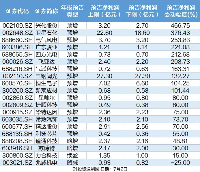兴化股份:预计上半年净利润为2.7亿元至3.2亿元,同比增长378.19%至466.75%。