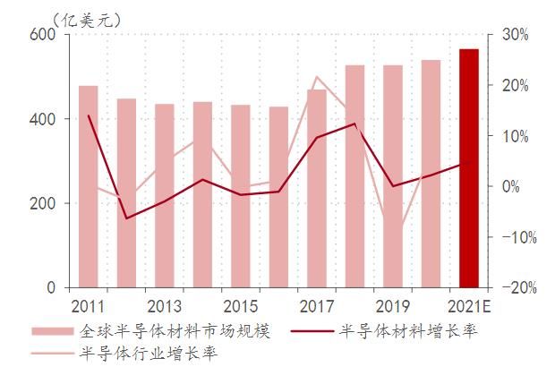 全球半导体材料市场规模及增长情况 来源:中银证券
