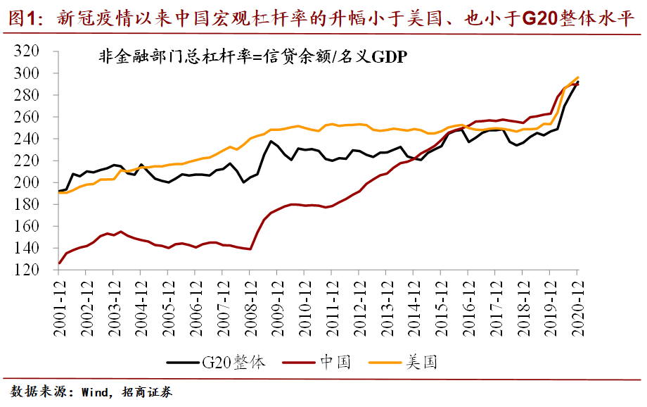 然而,新冠疫情对全球经济政治形势造成深刻影响。这一次的回归不会重复过去10余年的路径,我们将观察到一些显著的变化。宏观负债率在08年金融危机后第二次在国际间转移,未来将呈现美国加杠杆、中国稳杠杆的新格局,中国经济和资产价格重现2005-2007年情景的可能性正在提高。在长期非常规货币政策低效率的反思下,货币主义对政策的影响力下降,低碳经济、反垄断以及财政整固将成为后疫情时代的国际性新趋势。外需与碳中和对国内经济已经产生明显影响,凯恩斯主义的卷土重来意味着政府部门的扩张与收缩对经济的影响力将进一步上升。