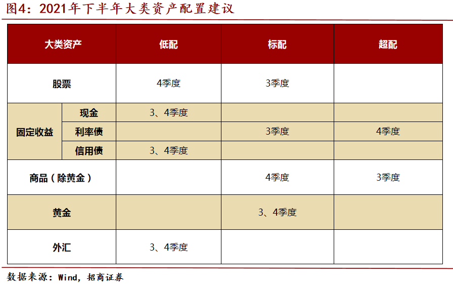 美联储货币政策正常化进程对国内价格水平以及资产表现都有重要的影响。在美联储开启QE Taper之前,我国将继续处于库存周期的上行阶段,碳中和目标下供需错配的格局难以扭转,因此工业领域的价格水平仍处于较高水平,我们预计下半年PPI同比增速将维持在9%以上的高位。资产价格则将提前反应美联储政策边际收紧的冲击。宏观场景显示,3季度中国经济维持量价齐升的状态,风险资产仍占优。但4季度国内经济量价齐跌,避险资产的相对收益将好于风险资产。因此,下半年大类资产配置应着手布局防御,3季度是调整时机,提升避险资产配置比例,降低风险资产在组合中的权重,尽量避免QE Taper对组合收益率的短期影响。但历史经验也表明,资产价格的中长期内表现由基本面因素决定,流动性不是唯一影响因素。在弱美元情景下,人民币走强、大宗商品处于长期上行周期、黄金价格上涨、非美国家/地区利率上行以及MSCI新兴市场股票指数跑赢MSCI发达国家指数等资产价格表现是未来数年的趋势性现象。