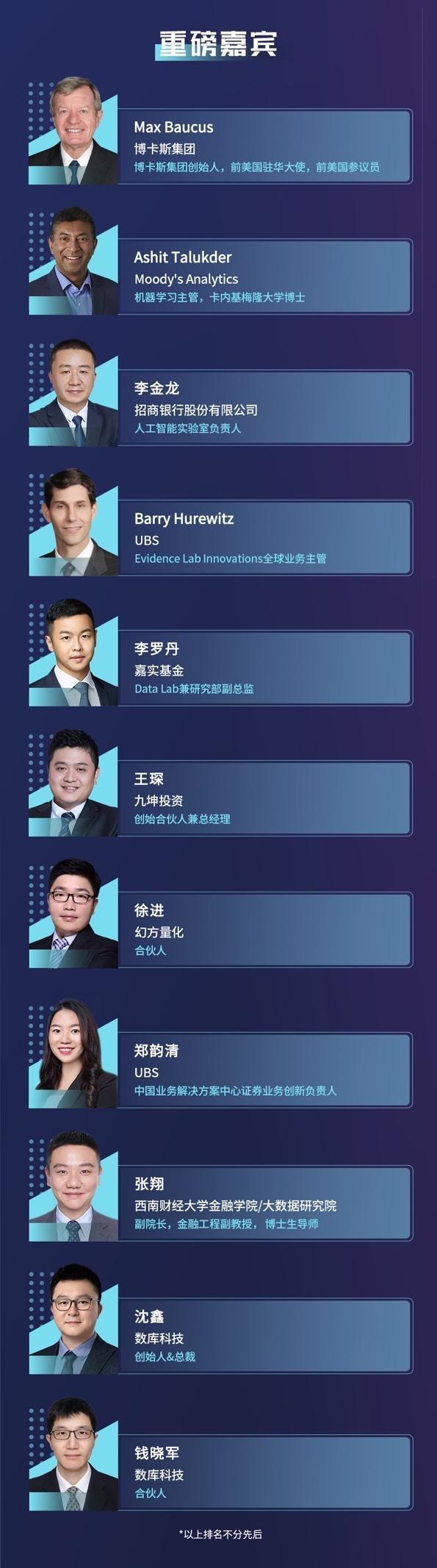 鸣谢媒体支持:《上海证券报》《证券时报》、《经济观察报》《国际金融报》、《21世纪经济报道》、《每日经济新闻》《新闻晨报》、新浪、网易、凤凰、财联社、界面、金融界、和讯、亿欧EqualOcean、中金在线、钛媒体、极客公园、i黑马、智能投研技术联盟、上海大数据联盟、DAMA数据管理、量化投资与机器学习、积募、交易门、新全球资产配置、王的机器、华工量化投资、Chihiro Quantitative Research