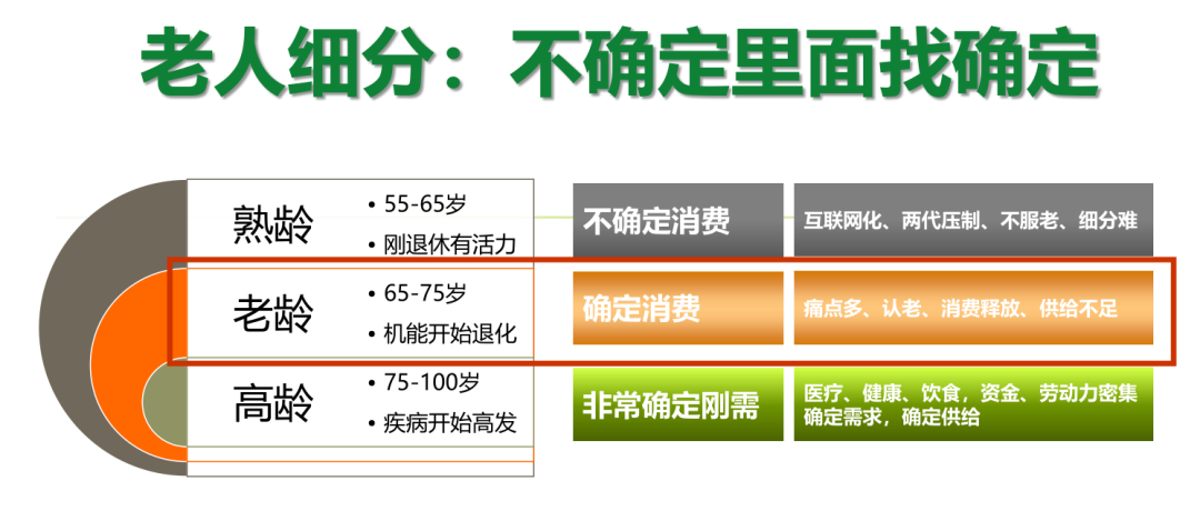 40、50后老年人的钱是比较难挣的。但是通过拉长服务周期,长期跑下来,这笔账还是能算得回来。不要太着急,耐心一点。等60后新老人进来,市场会逐步变大,要坚持到“富人变老”、“老人变富”那个时刻,爆发的机会就来了。