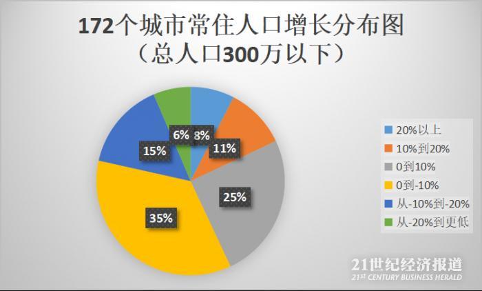 根据第七次全国人口普查公报,2020年我国常住人口数量低于300万人的地级市共有172个(包括地区、自治州、盟)。其中,过去10年间有74个城市常住人口实现增长,占43%,但仅13个城市增长超过20%;另外98个城市常住人口则出现“缩水”,占57%。