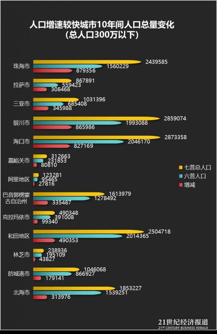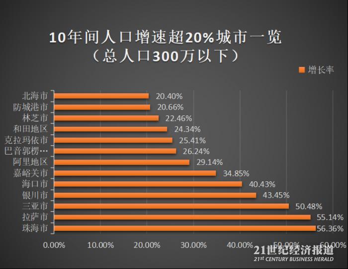 常住人口300万以下的城市,谁是过去10年的“人口赢家”?