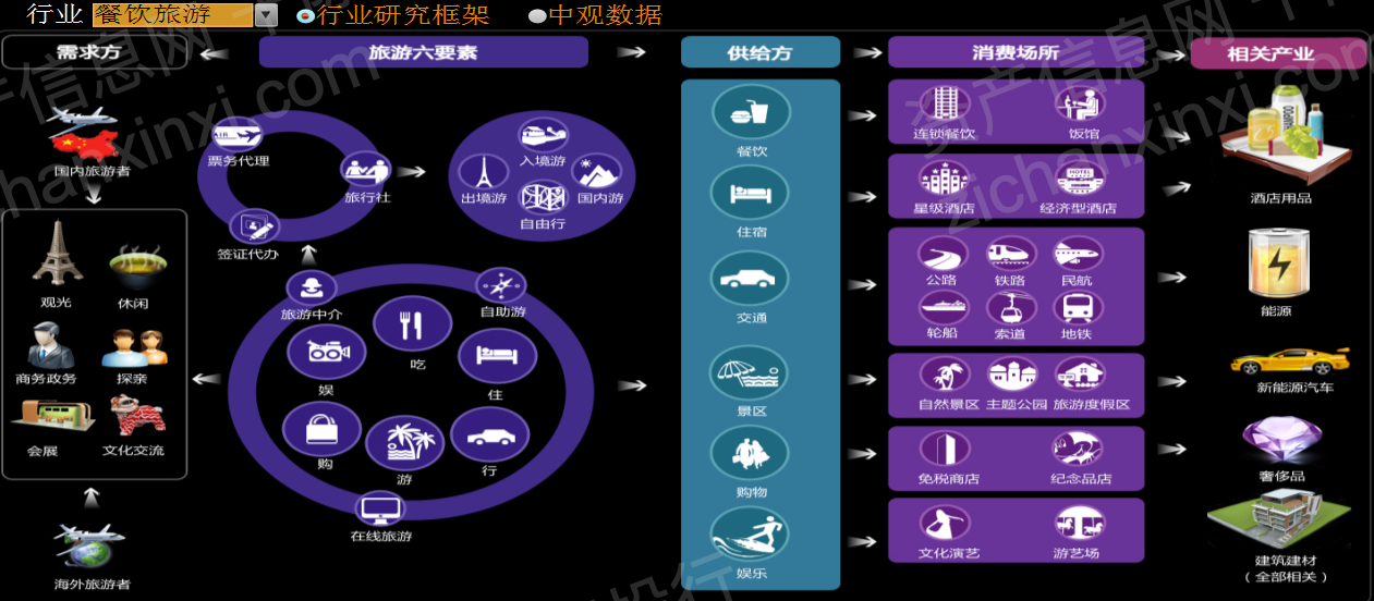 旅游产业是一个高度复合型产业,除了涉及吃、住、行、游、购、娱等旅游内部的核心行业,还涉及到交通运输、信息服务等十多个相关行业。