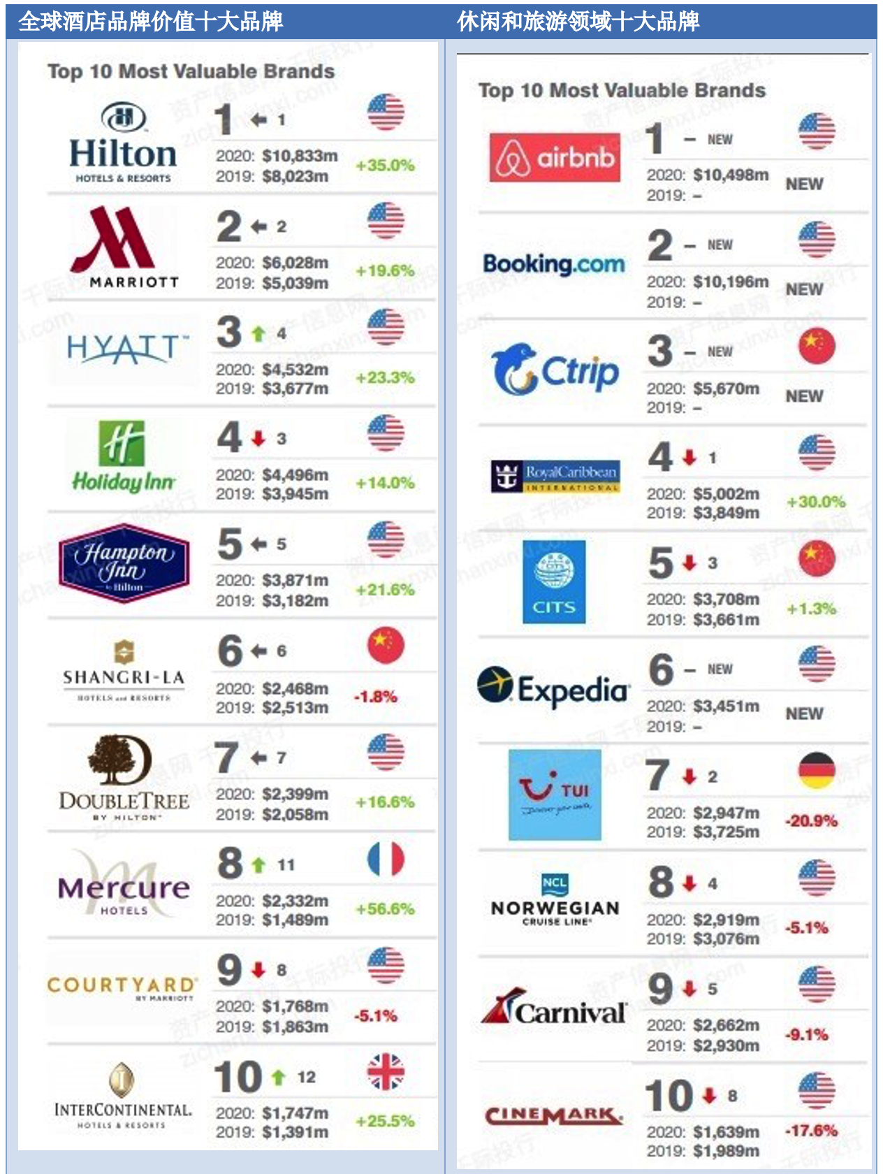 图 2020全球酒店品牌价值和休闲旅游品牌排行榜