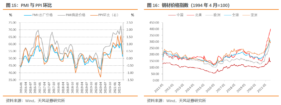 政策干预下大宗商品出现阶段性调整,不过在全球经济恢复、国内供给受约束的情况下,我们判断大宗商品中期上涨的基础仍在,同时中下游行业继续恢复,预计下半年PPI仍将处于高位。