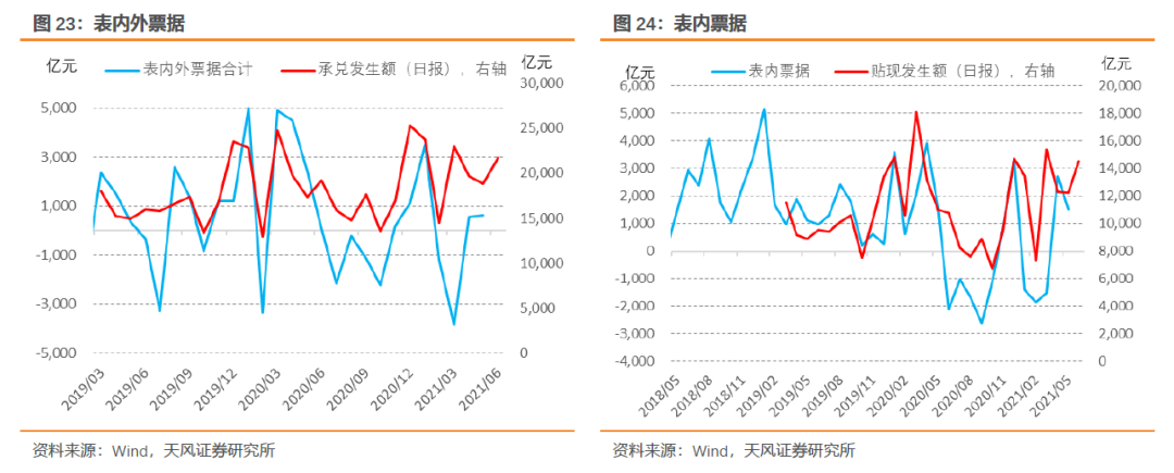 5月票据贴现净融资增长而表外票据继续萎缩。6月票交所数据显示票据贴现和开票规模环比都有所提升,结合6月票据转贴现利率上行的事实,我们预计6月表内外票据净融资1000亿。