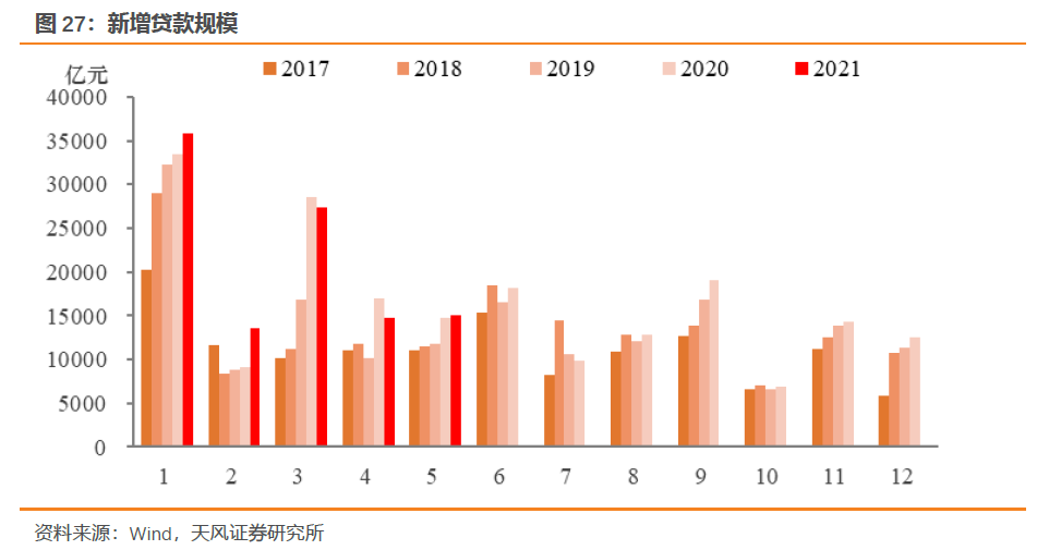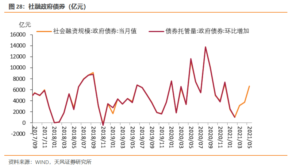 信托贷款方面,监管制定的2021年计划中再次提到“将行业融资类信托在去年的基础上再压缩20%”,今年前5个月信托贷款压降规模明显超季节性,我们判断6月信托贷款规模降幅依旧不低,预计下降1000亿。