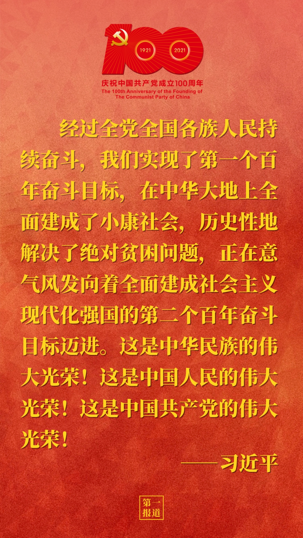 7月1日上午,庆祝中国共产党成立100周年大会在北京天安门广场隆重举行。中共中央总书记、国家主席、中央军委主席习近平发表重要讲话。