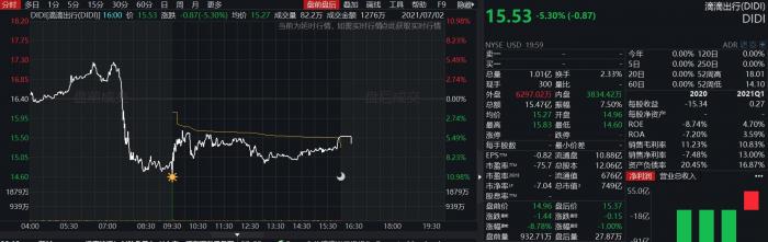 6月30日,滴滴出行在美股上市,7月2日受消息影响跌5.3%,报收15.53美元/ADS。