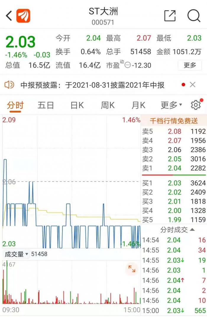 数据显示,过去一周ST大洲跌3.33%,最新总市值16.4亿元,今年以来跌超23.4%。