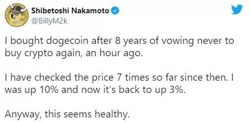 今年6月底,马库斯宣布,在旁观8年之后,将重返虚拟货币领域。他通过Robinhood平台购买了一些狗狗币,且不打算在短期内出售。
