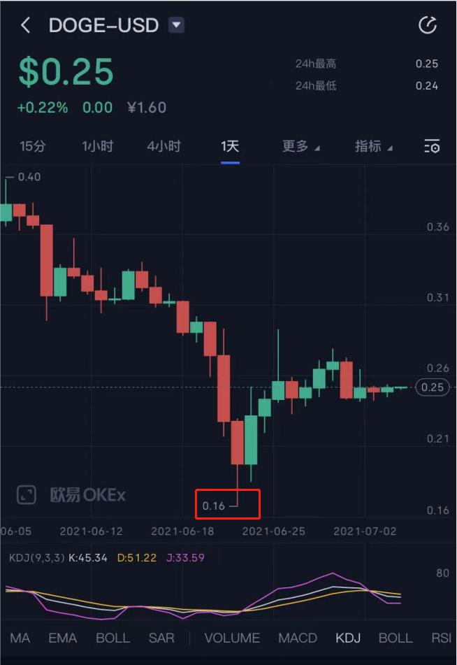 近日,由于虚拟货币市场的暴跌,狗狗币从0.74美元的高点腰斩再腰斩,一度跌至0.16美元附近。