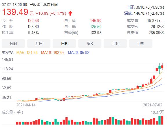 截至7月2日收盘,富满电子涨8.47%,股价报139.49元,创收盘历史新高,总市值达286亿元。