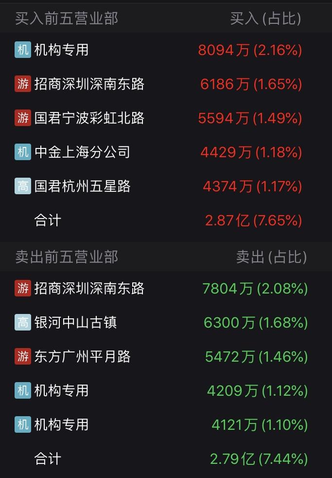 6月30日公布的龙虎榜显示,6月28日至6月30日,一机构专用席位买入8094万元、卖出4209万元,还有一机构专用席位买入0元、卖出4121万元。券商营业部方面,招商证券深圳深南东路买入6186万元、卖出7804万元,国泰君安宁波彩虹北路买入5594万元、卖出237万元,东方证券广州平月路买入19.2万元、卖出5472万元。