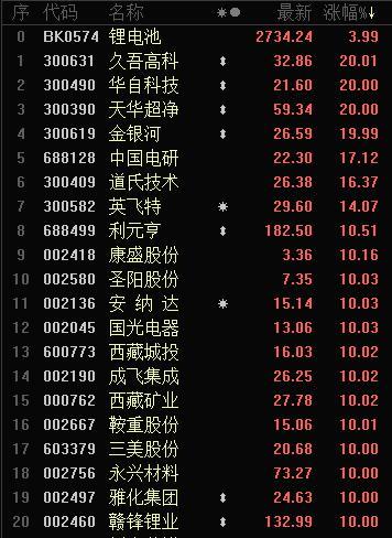 盘面上的表现上来看,今天指数涨幅一般,不过板块表现相对还是较为活跃,其中锂电池、有色金属等相关概念板块大幅走强。总市值约7万亿元的锂电池板块再度“疯狂”,超过30只个股涨停。真是有“锂”走天下。