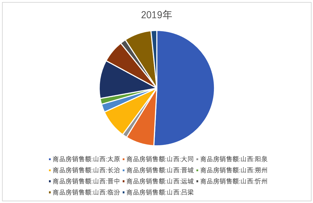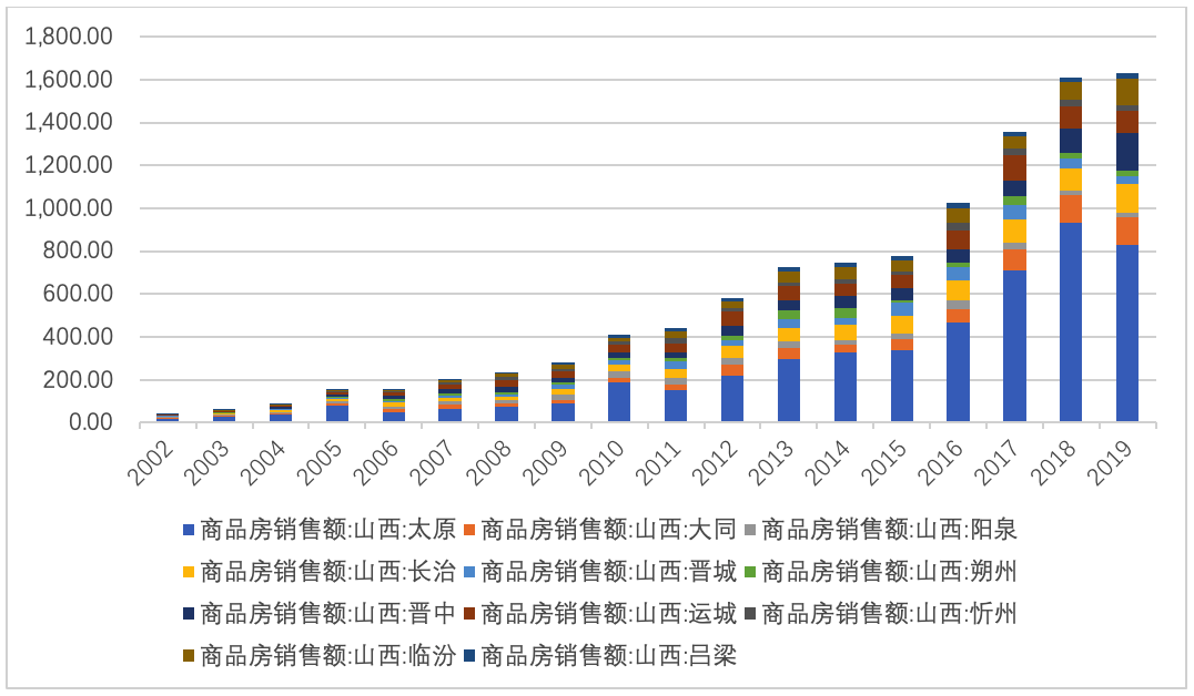 从数据来看,省会太原市属于整个山西省内房地产业最发达的区域,其房地产开发投资占比达到了全省将近40%,更突显该特点的是,太原市的商品房销售额占全省比重超过了一半,某些年份甚至接近60%。某种程度也反映出其人口密集程度相对较高,地区经济相对比较发达,可能是较好的投资方向。