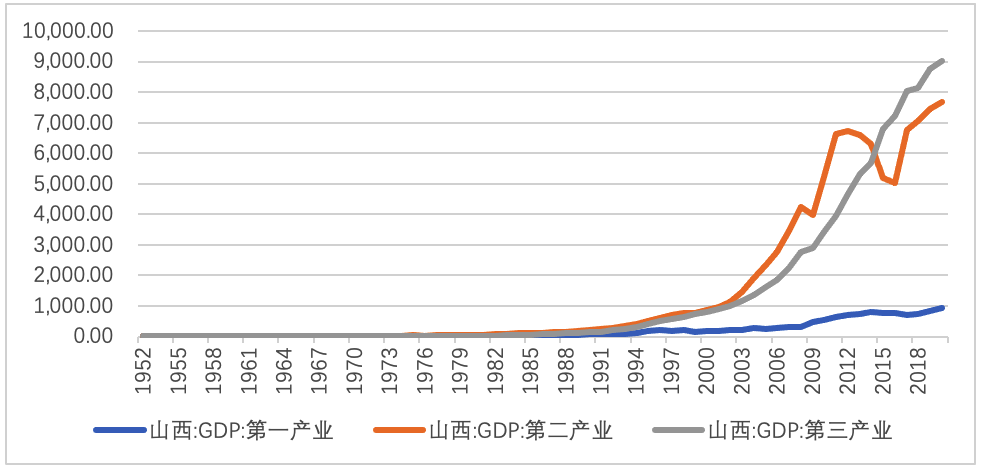 根据地区生产总值统一核算结果,山西省实现地区生产总值(GDP)17026.68亿元,按不变价格计算,比上年增长6.2%。其中,第一产业增加值824.72亿元,增长2.1%;第二产业增加值7453.09亿元,增长5.7%;第三产业增加值8748.87亿元,增长7.0%。三次产业结构为4.8﹕43.8﹕51.4。第二、第三产业增加值占地区生产总值的比重分别比上年上升0.02%和下降0.02%,战略性新兴产业增加值增长7.4%。其中,新能源汽车产业增长61.6%,节能环保产业增长12.1%,新材料产业增长9.8%,新一代信息技术产业增长5.9%。第一、二、三产业对经济增长的贡献率分别为4.84%、43.77%和51.38%。其中,工业增加值对经济增长的贡献率为36.2%。