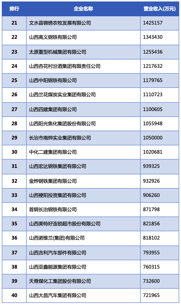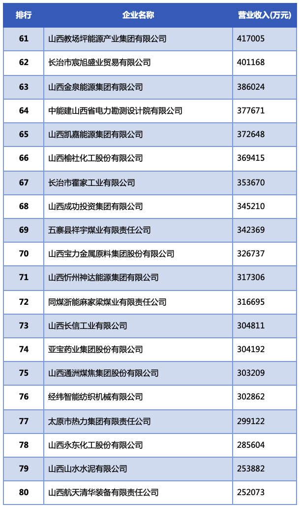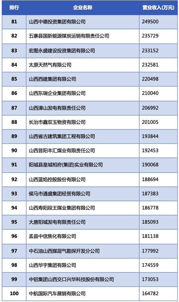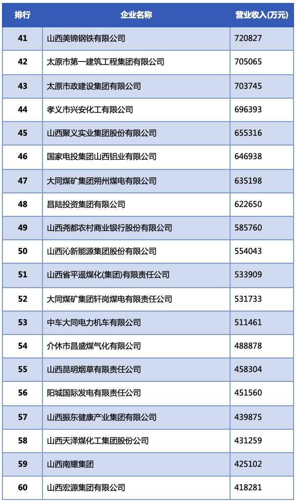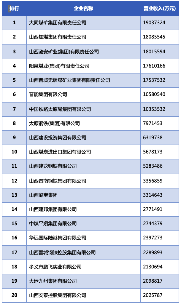 2018年7月19日,《财富》世界500强排行榜全球同步发布,阳泉煤业集团有限责任公司以2017年23792.8百万美元的营业收入位列第494位。2019年7月22日,阳泉煤业集团有限责任公司以2018年26290.1百万美元的营收位列《财富》世界500强榜单第469位。