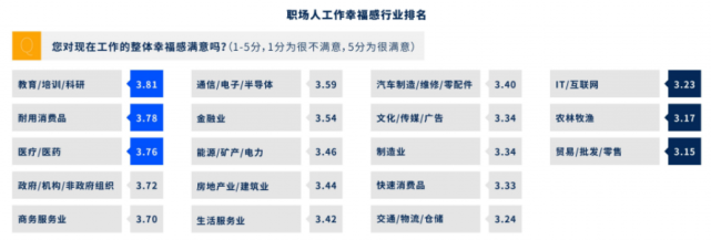 图:职场人幸福感行业排名(来源:脉脉数据研究院)