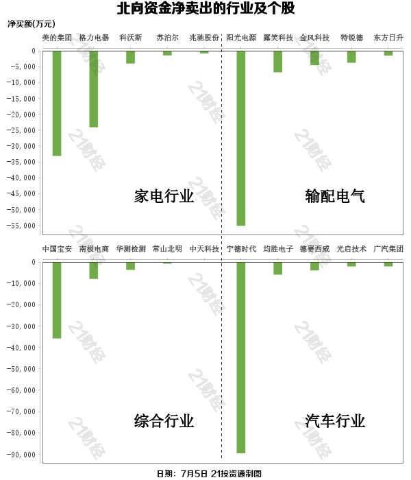 北向资金减持了28个行业,其中家电行业最多,净卖出金额达5.48亿元,其次是输配电气行业,净卖出5.27亿元。