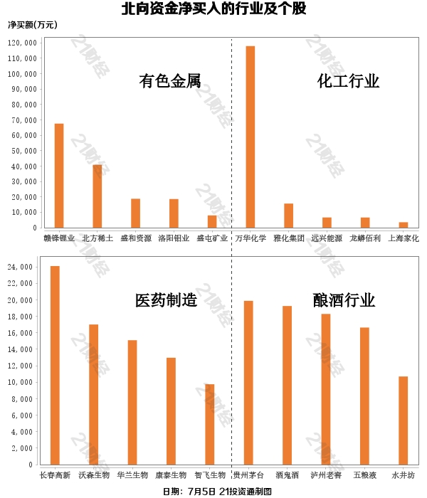 据21投资通(微信号ID:touzit21)智能监测,7月5日,北向资金净买入59.19亿元,其中沪股通净买入31.5亿元,深股通净买入27.69亿元。