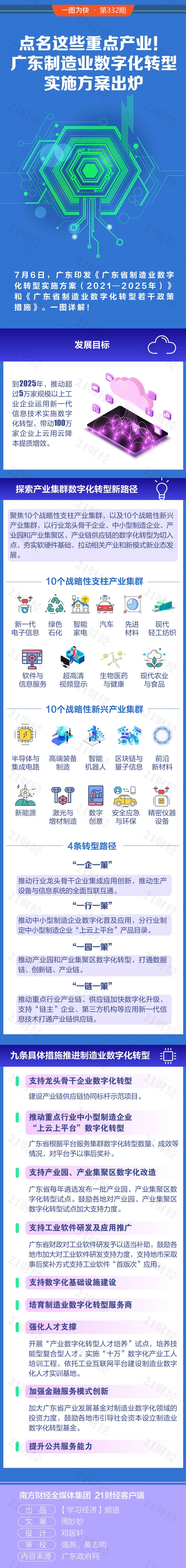 继今年5月广东发布关于加快数字化发展方案后,今日,广东印发《广东省制造业数字化转型实施方案(2021—2025年)》和《广东省制造业数字化转型若干政策措施》。两份重磅文件有哪些干货?一图详解!