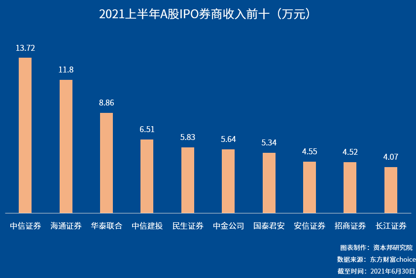 上半年A股IPO中介机构收入概况