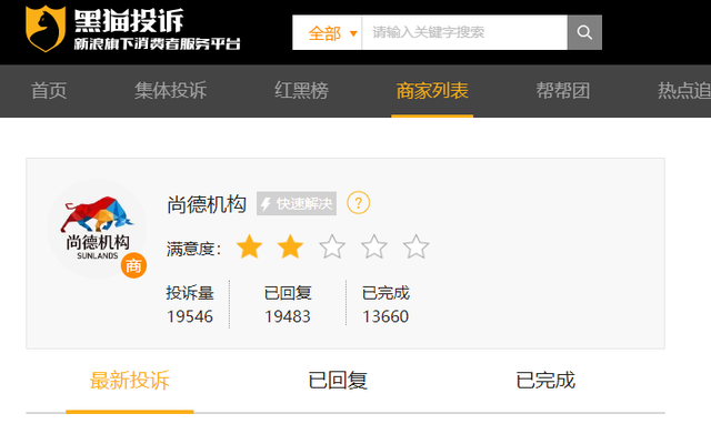 投诉的“重灾区”集中在尚德机构,投诉量为19546件,远远超过其他平台。