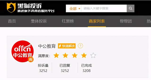 不过,虽然中公教育和华图教育虽然排名领先,同时消费者投诉也同样居于榜首。在黑猫投诉中,中公教育投诉量为3252件,相比之下,华图教育投诉量较少,为374件。