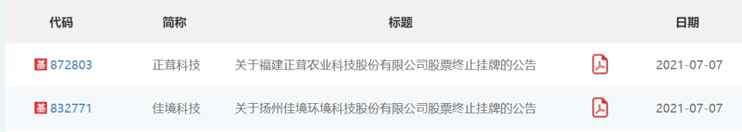 7月7日,新三板基础层公司正茸科技(872803)、佳境科技(832771)终止挂牌。
