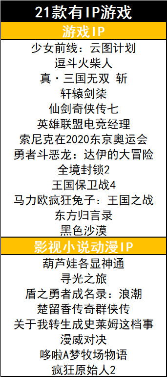 此外在IP名单中十分抢眼的IP游戏还有《英雄联盟电竞经理》、《漫威对决》、《索尼克在2020东京奥运会》、《少女前线:云图计划》等。