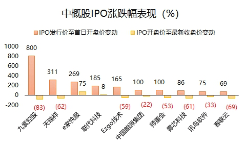 除此之外,一些赴美IPO首日股价高开的公司,后续表现也出现不理想的状态。
