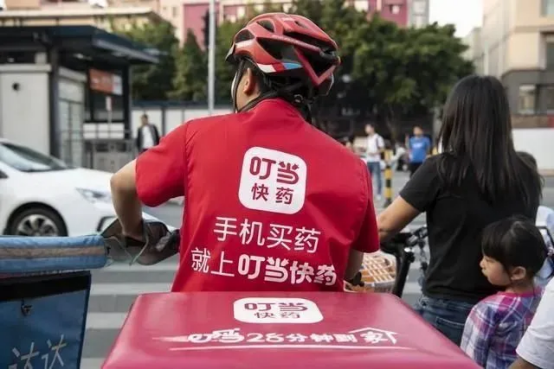 首先是以美团为代表的的即时配送平台。不同于叮当快药以自营药店进行配送的方式,深耕本地生活多年的美团采用药店加盟的方式,并旗下庞大的外卖骑手,在时效性和全天候方面都可以与叮当快药的“快”和“急”相提并论,同时也给叮当快药进入下沉市场带来了挑战。