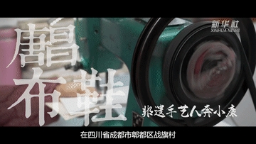 四川省成都市郫都区战旗村,“唐昌布鞋”传承人赖淑芳的铺子正在生产川西百姓俗称“千层底”的唐昌手工布鞋。