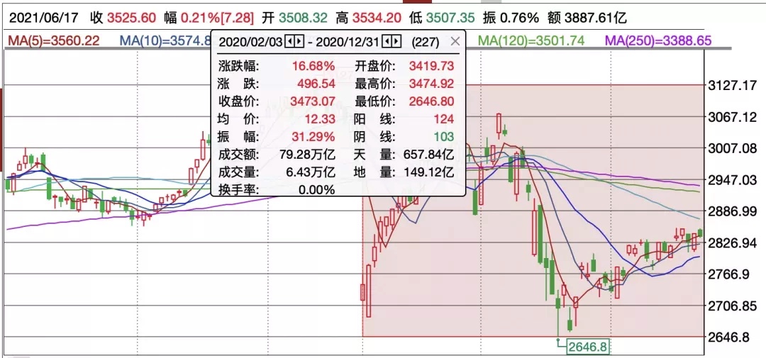 如果从2月3日开始持有,到2020年12月31日,上证指数累计涨幅将达到16.68%。