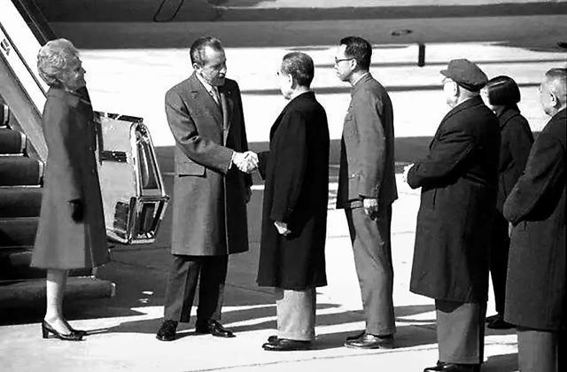 △1971年7月9日,中美建交前夕,美国国务卿基辛格秘密访华,叶剑英、黄华等人在南苑机场迎接。