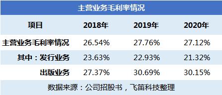 报告期内,公司主营业务毛利率分别为26.54%、27.76%和27.12%。从数据来看,公司主营业务毛利率较为稳定。其中2020年公司毛利率小幅下滑0.64%,主要是执行新收入准则运输费计入主营业务成本核算导致发行业务和出版业务毛利率下降所致。
