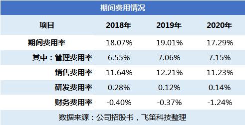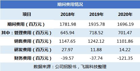 报告期内,公司期间费用分别为17.82亿元、19.36亿元和16.96亿元,期间费用率分别为18.07%、19.01%和17.29%。从数据来看,在2020年公司期间费用和期间费用率均有所下滑。从分项费用来看,主要是由于销售费用和财务费用下降导致。