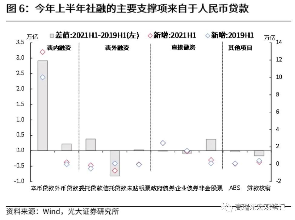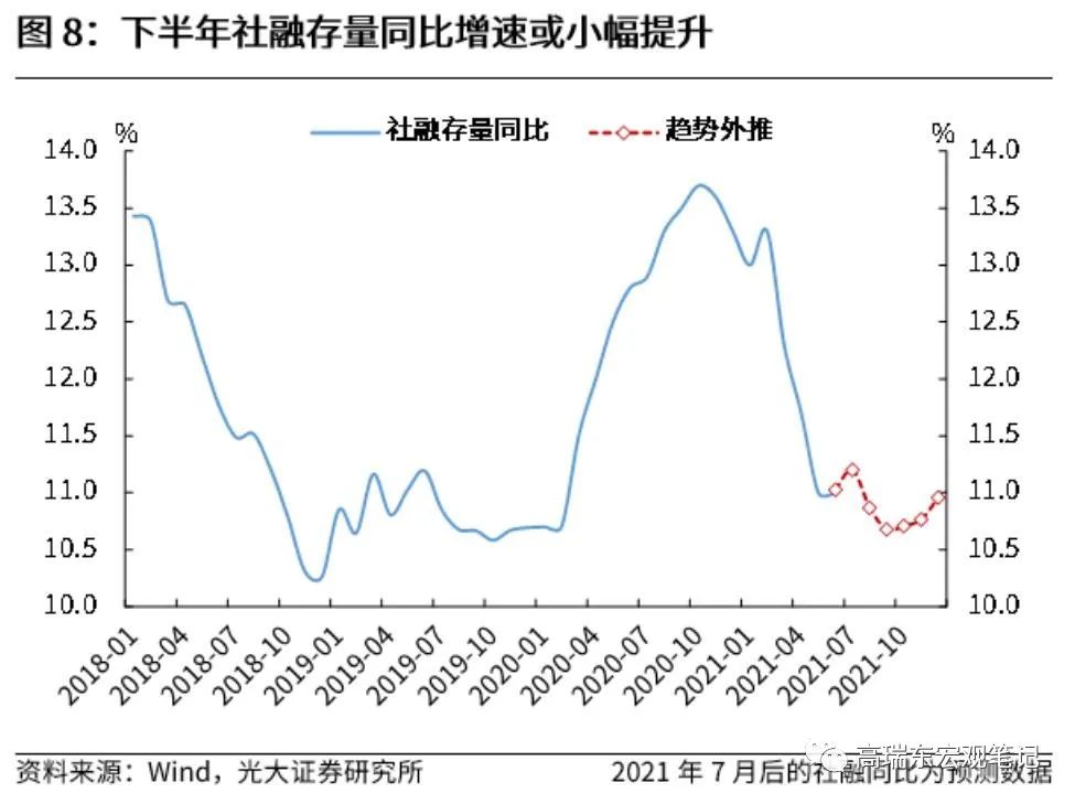 二则,上半年社融存量同比增速的超预期陡峭下行,对经济迈向更高均衡的复苏带来了一定的压力,通过降准补充商业银行流动性,一定程度上可以对表内信贷形成支撑。从今年3月开始,社融存量同比增速的下行速度开始明显超出市场预期。社融增速对经济的景气程度具有较好的指示意义,社融增速的快速下行在一定程度上预示着经济的势能或将逐渐放缓。在这种背景下,通过降准补充商业银行流动性,一定程度上可以对表内信贷形成支撑。