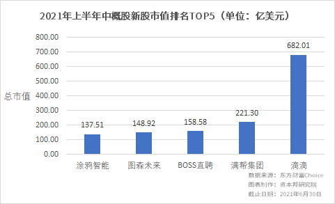 上半年中概股新股市值表现:平均市值49.98亿美元