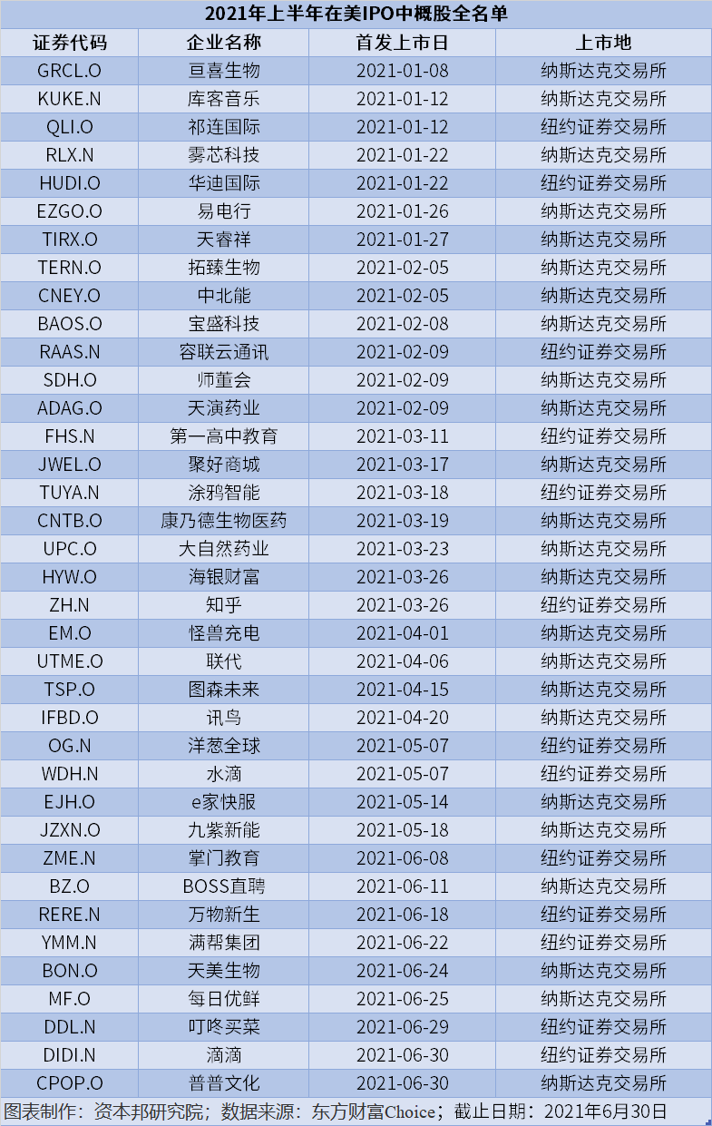 在美股大盘表现出色的背景下,今年上半年,中概股在美股上市热情升高,在上市数量上远超2020年同期。