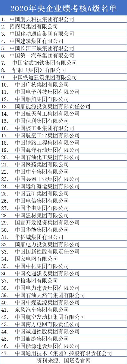 2020年央企业绩考核A级名单公布:中国移动等47家上榜