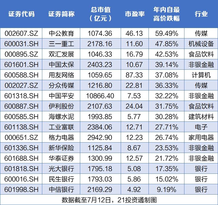 此外,格力电器、中国太保、工业富联、三一重工、中信银行、伊利股份等超2000亿市值公司亦大幅下跌,多数公司自高位跌幅超过20%甚至超过40%。