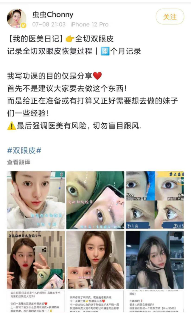虫虫Chonny在直播间经常分享自己做医美的心得经验,而到了今年3月,在虫虫Chonny的首场医美直播中,有19个城市的医美医院来承接,在7小时内成交额就破了亿。
