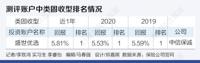 在货币型中,中信保诚的现金增利账户近一年回报2.16%,位列第一;华泰的稳健型账户在2020年回报2.95%,位列第一。