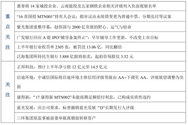 1. 惠誉:将14家城投企业、云南能投及4家钢铁企业相关评级列入负面观察名单